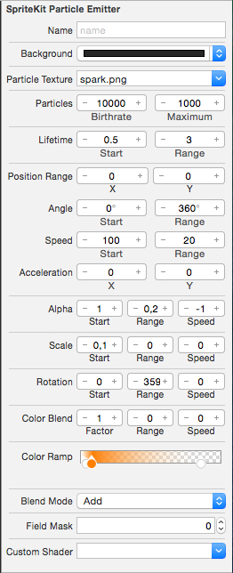 Mention particulière à l’émetteur de particules de SpriteKit, qui permet de générer des explosions de ouf rien qu’en modifiant quelques paramètres: